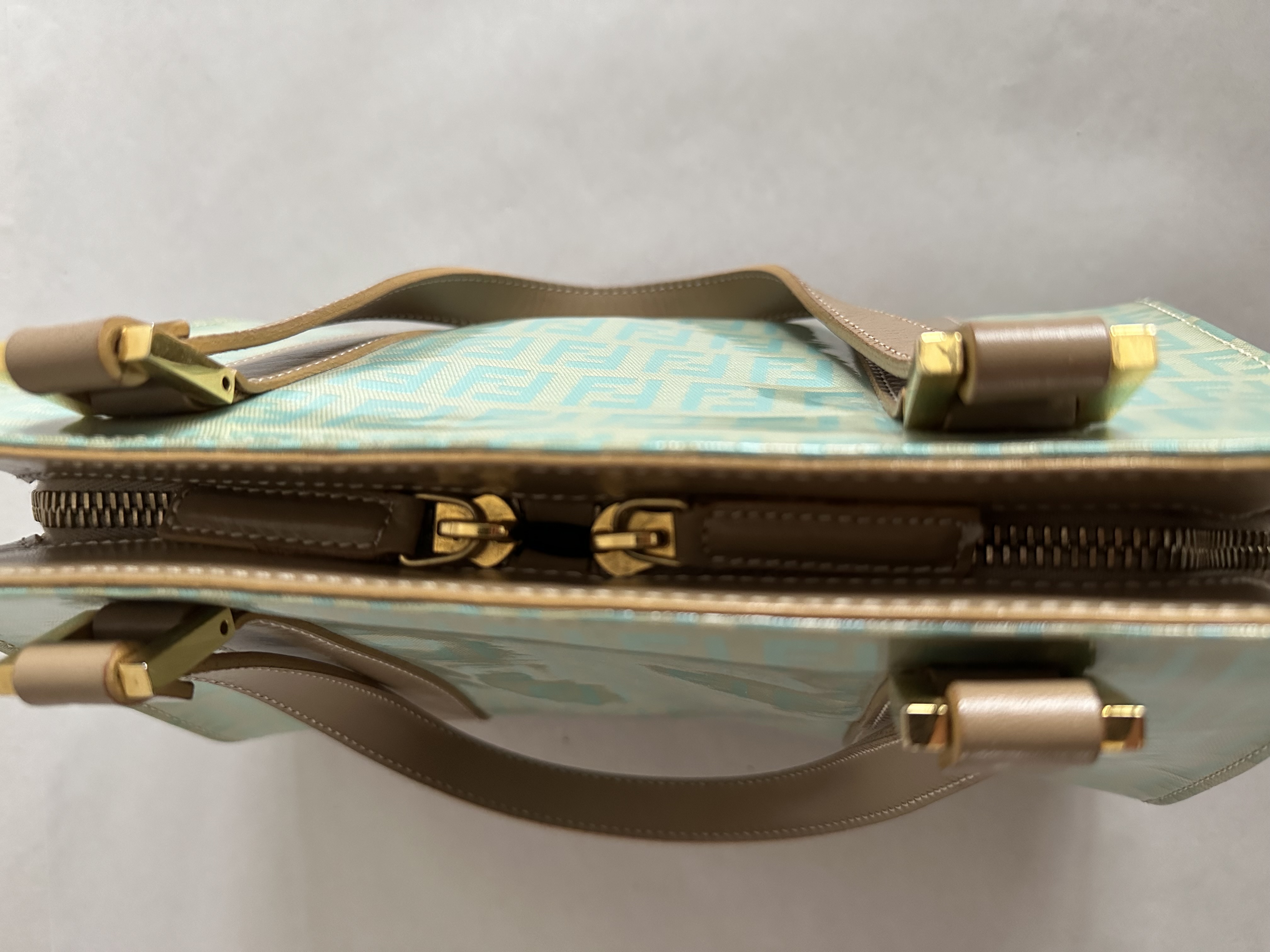Fendi light blue bag with two zip fastenings and is in perfect condition.