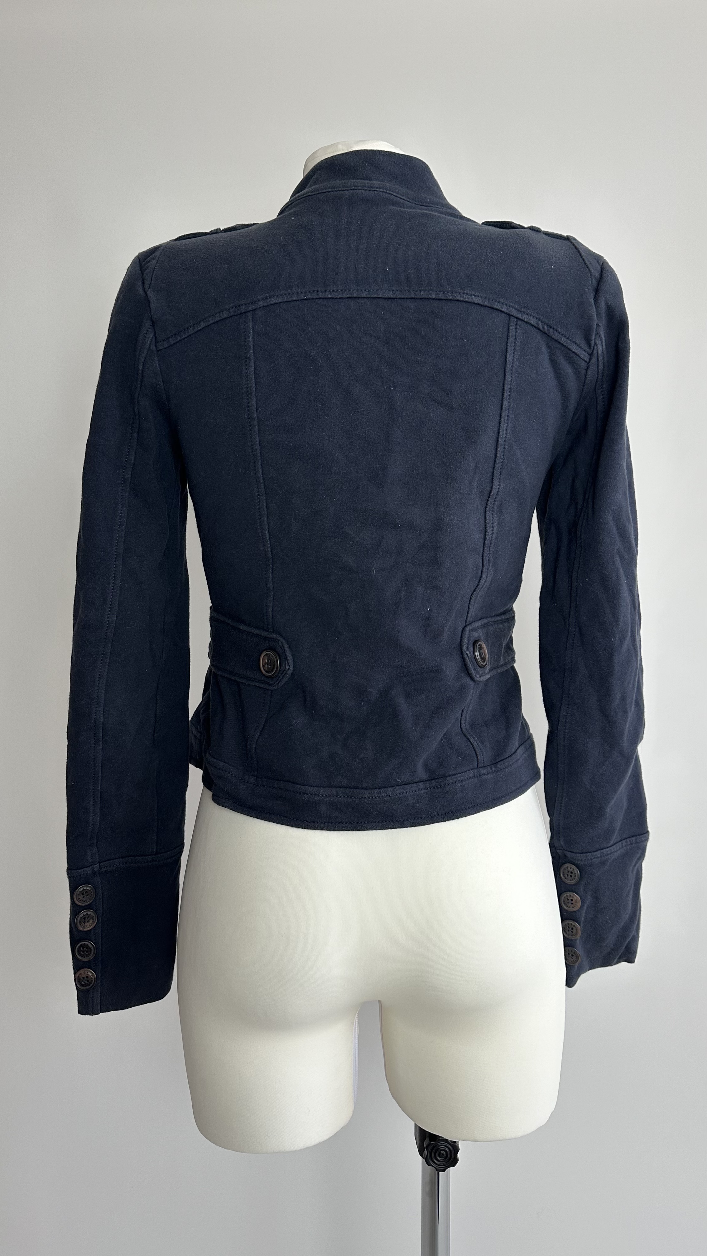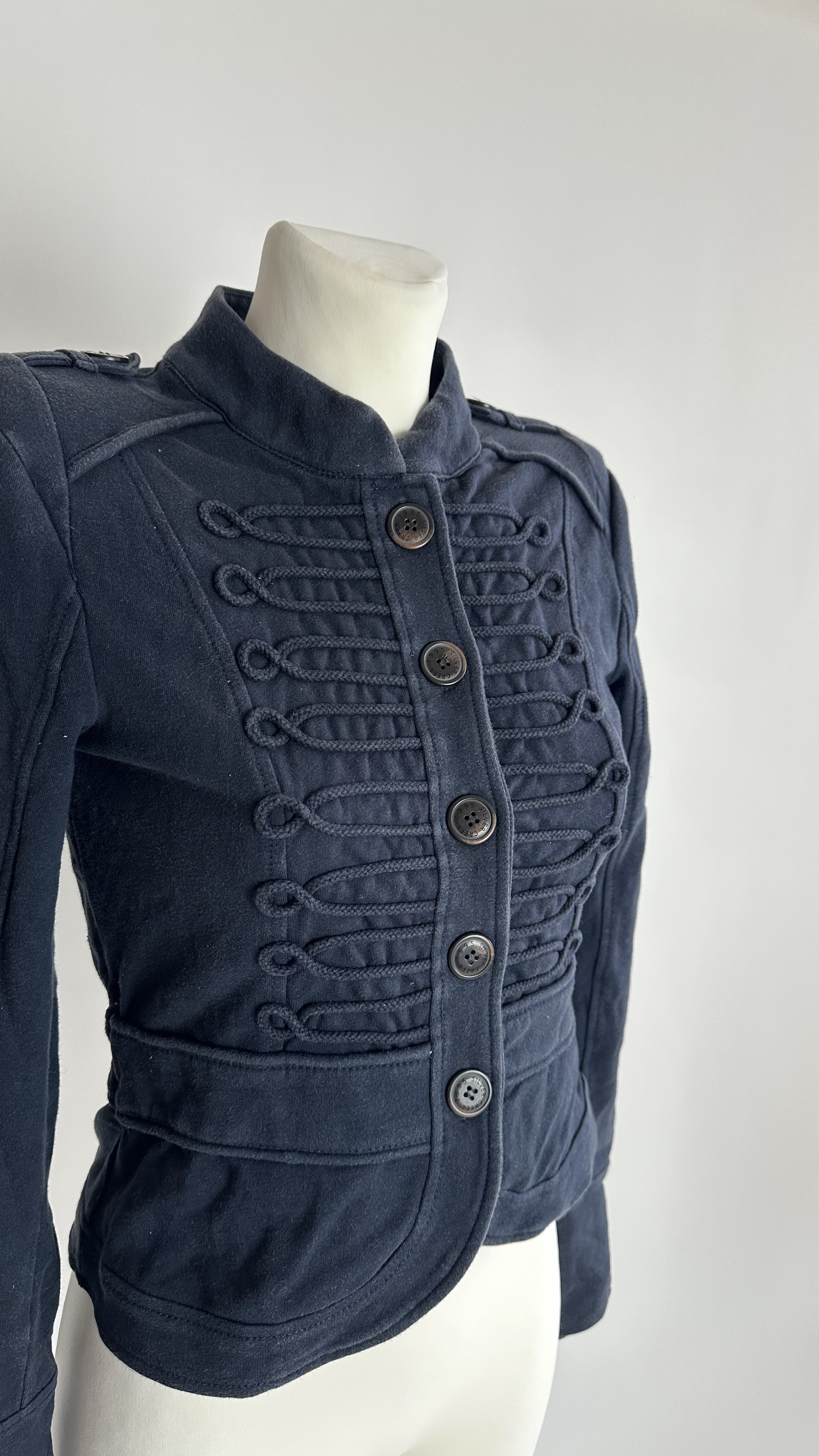 A timeless, military-inspired Napoleon jacket in size S by Silver Crest, featuring a beautifully structured and feminine silhouette. Designed with a high stand collar, classic braided detailing across the front, and decorative buttons that emphasize its iconic military character. The fitted waist and tailored seams create a sharp yet elegant look.